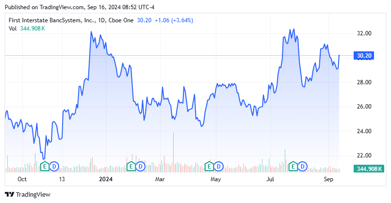 This financial institution holding firm has been round since 1971 and is headquartered in Billings, MT. The corporate by means of its 304 branches provides a variety of banking services and products similar to checking, financial savings and time-deposits to particular person in addition to loans. It additionally gives quite a lot of totally different mortgage and different merchandise to small and mid-size firms together with in industrial actual estates, agricultural, and many others. The inventory at the moment trades simply over $30.00 a share and sports activities an approximate market capitalization of $3.1 billion. The financial institution had simply over $30 billion in belongings and $22.9 million in deposits as of the top of the primary half of 2024.