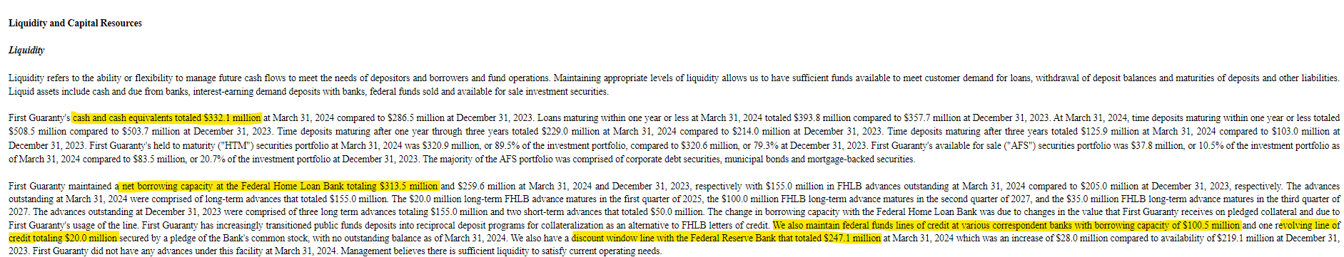 Whereas many banks are grappling with the dangers related to uninsured deposits, First Warranty Bancshares doesn’t have to fret about this situation. Solely 10% of the financial institution’s deposits, or roughly $300 million are uninsured. From a liquidity perspective, First Warranty has uninsured deposits lined with money available of over $330 million. Ought to they want further entry to funds, they’ve over $650 million in liquidity accessible by the Federal Dwelling Mortgage Financial institution and Federal Reserve. Due to this protection, I contemplate the financial institution’s uninsured deposits to be a energy for the popular share thesis.