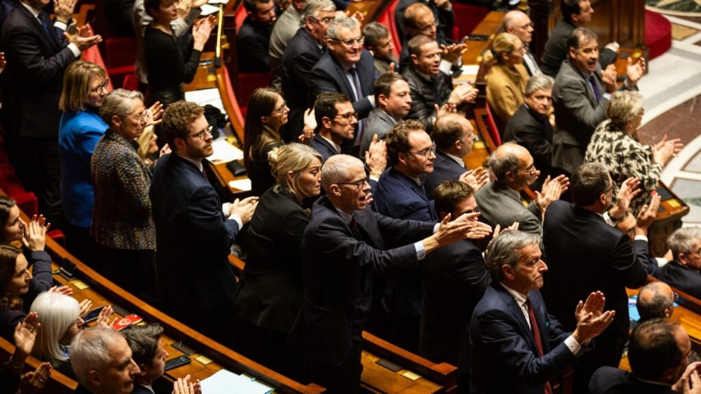 French lawmakers debate within the Nationwide Meeting in Paris Wednesday. A majority of legislators voted to oust Prime Minister Michel Barnier, forcing him to resign.