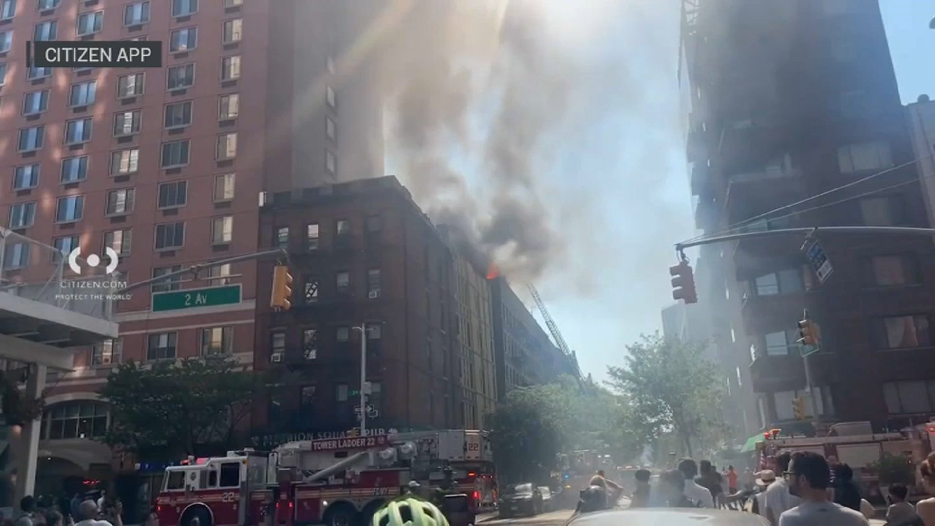 A name in regards to the blaze on East ninety fifth Road, between Second and First avenues, got here in shortly after 10 a.m. Greater than 100 firefighters and EMS personnel are on the scene.