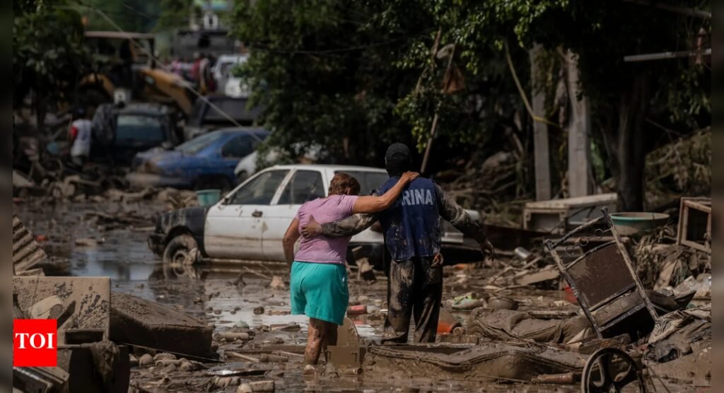 TIANGUISTENGO: When a river that winds by way of the mountains of central Mexico instantly changed into a crushing wall of water this week, it virtually wiped the 400-person village of Chapula off the map. Residents solely had time to shout, warning neighbors dwelling alongside the riverbanks, and desperately search shelter from the lethal flooding and landslides which have reduce off 300 cities in central and jap Mexico from the skin world. Hundreds of troopers and employees scrambled Tuesday to rescue civilians and unblock roads. “There’s nothing left. It worn out homes, it worn out the bridge, it worn out the whole lot. The one factor left standing was the church and the warehouse the place we had been looking for refuge,” mentioned 21-year-old Stephanie Ramirez, who was a part of a gaggle of aged, ladies and kids who stumbled off a rescue helicopter Tuesday. The federal government confirmed that at the very least 64 individuals have died as a result of torrential rains. Dozens are nonetheless lacking and officers warn the complete extent of the devastation in distant cities of a pair hundred to 1,000 residents stays unknown. The rains had been triggered by the convergence of two tropical storms churning off Mexico’s western coast, placing on the finish of an unusually heavy wet season that has left rivers overflowing and hillsides weakened. Ramirez and her grandmother had been evacuated after days of hoping assist would come. The remainder of her household and dozens of their neighbors had been nonetheless ready to be evacuated. As extra rain threatened to pour down, they sought shelter on a close-by hillside on the verge of collapsing subsequent to the still-swollen river. “Now we have to get them out. They’re in fixed hazard there,” Ramirez mentioned. Mexican President Claudia Sheinbaum mentioned Tuesday that one of many authorities’s priorities was to open roads and “to safe air bridges, meals provides, water, and examine on how every particular person is faring.” Hundreds of navy and civilian personnel had been working tirelessly on these efforts Tuesday, however in Chapula, residents determined to organise on their very own. Based on Ramirez, they known as their family in america, “and it was them who made preparations to get us out of there little-by-little.” With assist from residents of the close by city of Tianguistengo, a personal air bridge started working, utilizing a borrowed helicopter to evacuate teams of about half a dozen individuals at a time, whereas different residents organised luggage of primary items to hold on foot, with some troopers, to neighboring villages that had been nonetheless reduce off. “We expect it is about six or seven hours strolling, however we wish individuals to know that we’re working … that they will see we additionally care about their scenario,” mentioned native resident Neptali Rodriguez. The toughest-hit states are Veracruz, Hidalgo and Puebla. In Hidalgo alone, the place roughly half of the remoted villages are positioned, about 100,000 houses had been broken or destroyed by flooding rivers and mudslides. In Veracruz, the place at the very least 29 individuals died, rainfall reached 24 inches in simply 4 days. Veracruz Gov. Rocio Nahle mentioned greater than 300,000 individuals had been affected within the state alone. On Tuesday, public officers had been going door-to-door in cities like Poza Rica, Veracruz, the place water from the overflowing Cazones River on Friday reached 13 toes (4 meters) excessive in some areas. They had been asking residents if anybody was lacking. Based on the Nationwide Civil Safety Coordination, 67 individuals had been nonetheless unaccounted for as of Tuesday. Well being groups had started fumigating affected areas to stop outbreaks of dengue, a illness unfold by mosquitoes. In Poza Rica, resident Roberto Olvera mentioned an oil refinery alarm alerted him to rising waters. “It was terrifying, many individuals within the neighborhood could not escape,” he mentioned. Floodwaters there additionally left a black, oily residue believed to have come from close by oil and gasoline installations, coating bushes and rooftops. Dozens of well being facilities had been broken, together with one in Alamo, Veracruz, the place floodwaters reached two meters (6.5 toes), destroying all tools. Native well being director Marti Batres mentioned medical employees at the moment are working outdoor. Whereas 1000’s of troopers and rescue groups seek for the lacking and ship support, helicopters are ferrying provides to remoted zones and personal building corporations are serving to to reopen key roads. Sheinbaum mentioned there are sufficient assets to reply and that the federal government “will spare no expense throughout this emergency.”