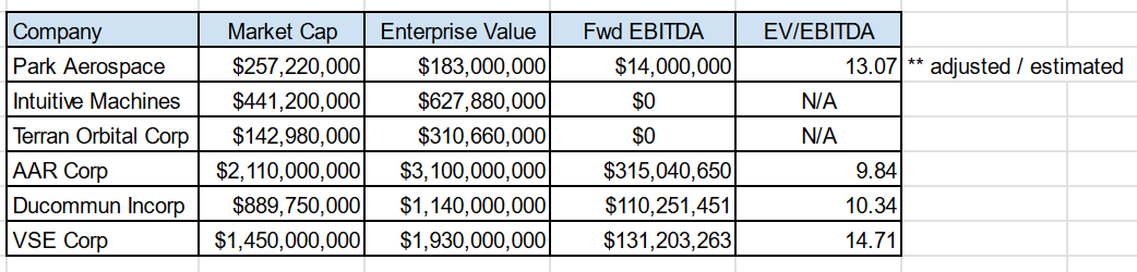 Aerospace sector choose EV / EBITDA multiples (Writer’s spreadsheet (knowledge from Looking for Alpha))