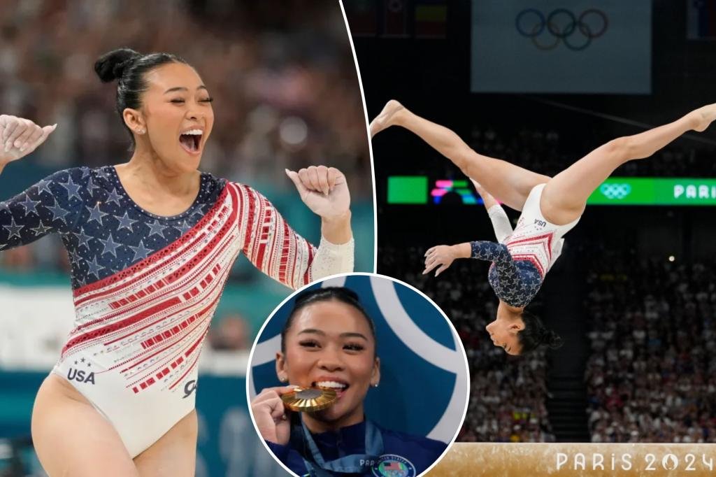 Suni Lee, who captured the person gold medal within the all-around in 2020 in Tokyo, joined Biles and their teammates in successful group gold Tuesday in Paris.