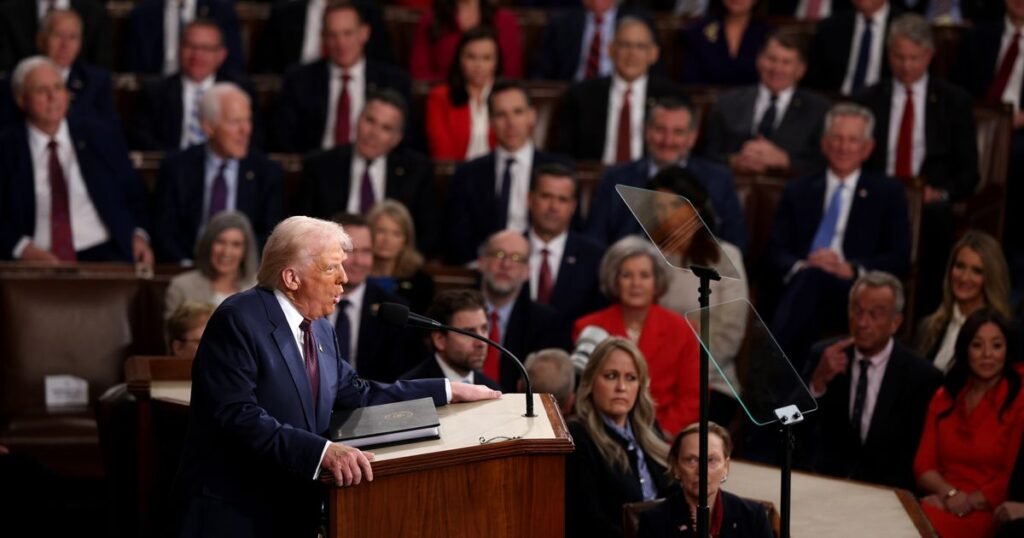 State of the Union addresses, just like the one Donald Trump will ship on Tuesday evening, are a treasured commodity for each president. The viewers is usually giant (roughly 36 million folks watched Trump’s handle to Congress final March). The trimmings are imperial with members of Congress elbowing each other for a magic second with the Boss as he slowly proceeds into after which out of the Home chamber. Since Trump’s social gathering controls the Home, Speaker Mike Johnson and Vice-President J.D. Vance will stand behind him main partisan cheers for his each utterance. The White Home will have the ability to prepare for “actual folks” (usually heroic army members and first responders or survivors of heartrending tragedy) to take a seat strategically within the gallery as human props for some level or different the president needs to make. And this 12 months, the timing is excellent to set the stage for the GOP’s midterm-election messaging because the Republican Get together tries desperately to increase its management of Congress in November.