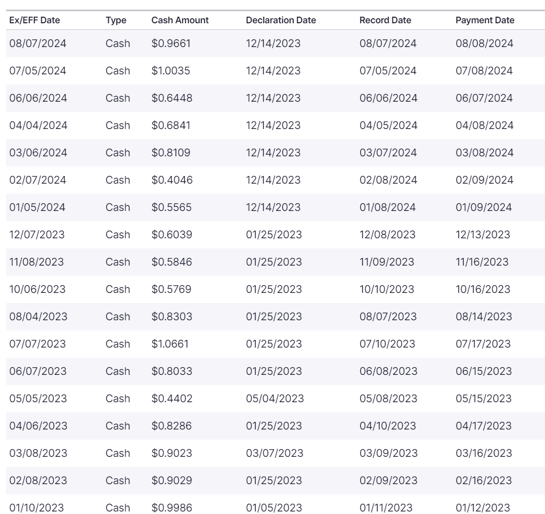 A Record of TSLY’s Payout Historical past (Nasdaq.com)
